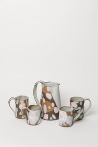 Dark Brown Pastel Camo on a dark brown stoneware body. Perfect for your drinking pleasure!