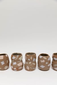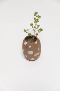 Round oval porcelain inlay Vase - Pastel Flowers on Sandy Clay