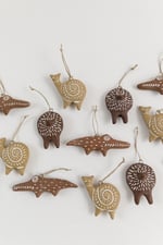 Each Hand painted and pressed solid clay ornament from an original sculpted mold. Expect some slight variation from one to the next as each ornament is still handmade.